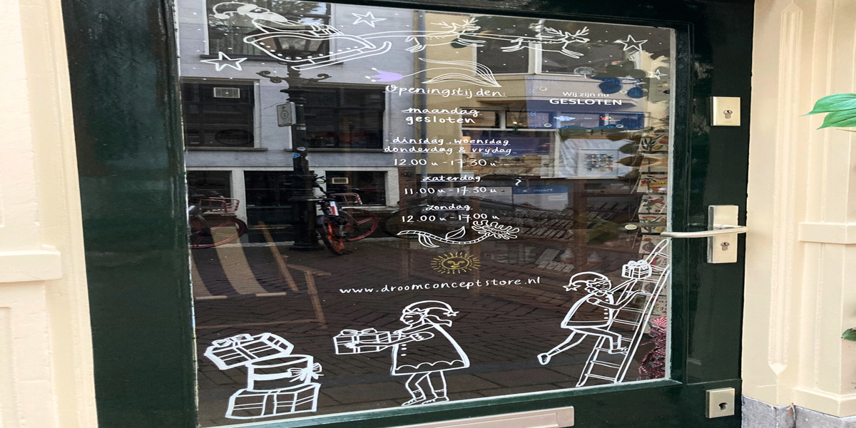 "De raamillustratie is een echte eye-catcher voor mijn winkel. Het ontwerp was boven verwachting en het uiteindelijke resultaat is nog mooier dan op de tekeningen!"